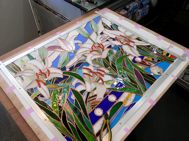 修理したステンドグラスを取り付け 修理したステンドグラスを取り付けに行って来ました。 うっかり写真を撮り忘れるところでした いまだにSO902iという時代遅れの携帯を愛用しているのですが 画質が・・・・