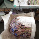 アイリスのステンドグラス・ランプシェード さいたま市にお住まいのW様からご注文いただいた アイリスのステンドグラス・ランプシェードのデザイン画です。 サイズ:Φ 310mm × H 250 mm(器具を除くガラス部分) ピンクを基調とする明るいイメージの照明で、 既成品にないモールド形状とサイズがご希望でした デザイン決定後、モールドの制作から開始しました。 アイリスのステンドグラス・ランプシェード Post date 2013/08/07 Posted in Making, Object Artworks Tagged with アヤメ・菖蒲・アイリス・Iris, ステンドグラス, ライティング・オブジェ / 照明器具, 制作風景・工程, 花・植物モチーフ Previous post: ベベルグラスのステンドグラスパネル・Workshop Next post: ミュシャ・黄道十二宮 エナメル絵付けのWorkshop 2013 Mrs.K 4 Comments ピンクのアイリスランプ私も作ってみたいですが可能ですか? アイリスのランプシェードは ガラスの分割数が多いので少々時間が掛かりますが、 初めてステンドグラスを作られる方でも 簡単に作ることが出来ます。 Post author どうしても、作ってみたいのですが? 図案を頂けますか。 有料の場合おいくらですか。 お問い合わせの件 アイリスのランプシェードを作るためには モールド(シェードの型)が必要ですが、 生憎、一点もののサイズで制作したために 市販のモールドは使用できません。 又、図案を販売することはしておりません。 同じデザインでお作りになる場合 販売目的で無く、習作としてであれば デザインの使用は可能です。 但し、デザインの使用、 画像を公開する場合は著作権を 明記して頂くことが条件になります。 宜しくお願い致します。 Post author Comments are closed.